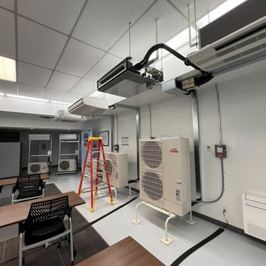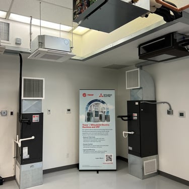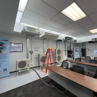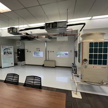 Butler was selected by Mitsubishi Electric / Trane and Local 49 to build the new state-of-the-art VRF lab to provide students and apprentices with experience in the latest Mitsubishi / Trane technology. This partnership is a testament to Butler's commitment to quality installation and evolution with current technologies. VRF technology allows separately controlled heating/cooling from a centralized outdoor condenser.